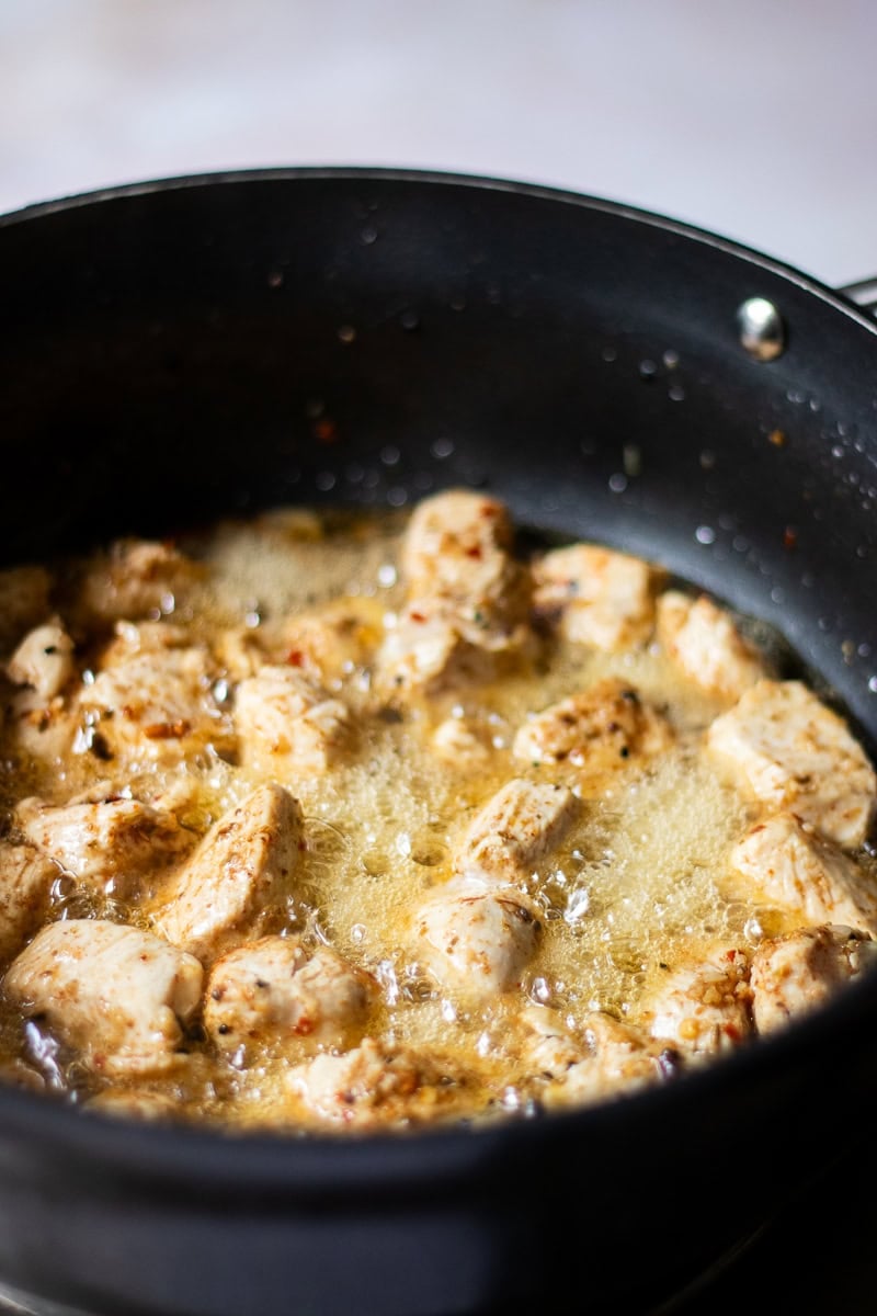 - Add your chicken and saute for 2-3 minutes until it changes colour
