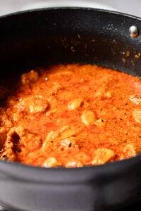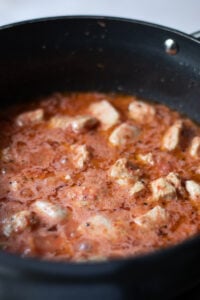 - Now stir in your tomatoes and simmer covered for 20 minutes or until your chicken is tender. If your boneless chicken is chewy then simply add ⅓ cup of water and simmer for another 10-15 minutes.