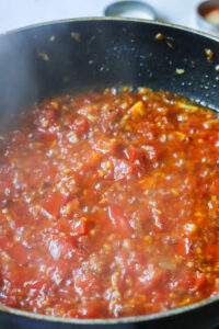 - Cover with a lid for two minutes then remove the lid and saute until the masala becomes cohesive looking and the oil rises over the tomato paste. Add a splash of water if it starts to stick/burn.