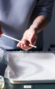 - If you have a traditional skewer then that is perfect otherwise you can use a wooden dowel, a straw, or even a slim pen or pencil covered in plastic wrap