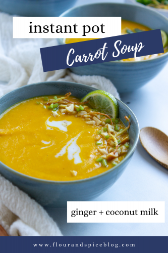 Fall in a bowl. That is always how I think of this soup. Actually it's more like a fall weekday in a bowl given how easy it is. A little saute action, pop in your remaining veg and stock and let the Instant Pot do it's thing. When it's done the heavy lifting, you puree and stir in some coconut milk and voila! Your Instant Pot Carrot Soup is ready.