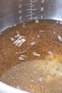 Hi Deewa! You can simply combine the first 6 ingredients in your IP with the two cups of water and set it on manual for 15 minutes for soaked daal and 18 for daal that has not been presoaked. Then quick release and continue with the rest of the recipe. Happy Cooking 🙂