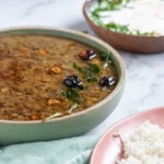 Kaali Daal or Sabut Masoor ki Daal is a hearty flavorful daal that is popular in Pakistan and India. This version is flavored with simple spices and an optional secret ingredient!