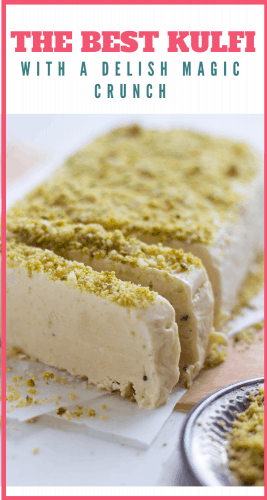 Creamy Sweet easy Homemade Kulfi with condensed milk meets Magic Crunch meets the elegance of a loaf cake - a winner all around! Perfect for entertaining and weeknight treats alike!