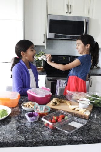 Both my girls were both quite adamant that they pack their own Bento Boxes without any assistance. They used many of the Loblaws in-store dietitians' tips along the way. Pre-washed salads, mini cucumbers, a new variety of grapes, and kid-made sunflower seed butter energy balls made their way into their boxes. I loved seeing their easy confidence in action. I also learnt that when they take over lunch packing there will be a fair amount of goofing and snacking involved. As a mother, if my kids want to 'steal' extra cucumbers I am not going to be too bummed about it 😉