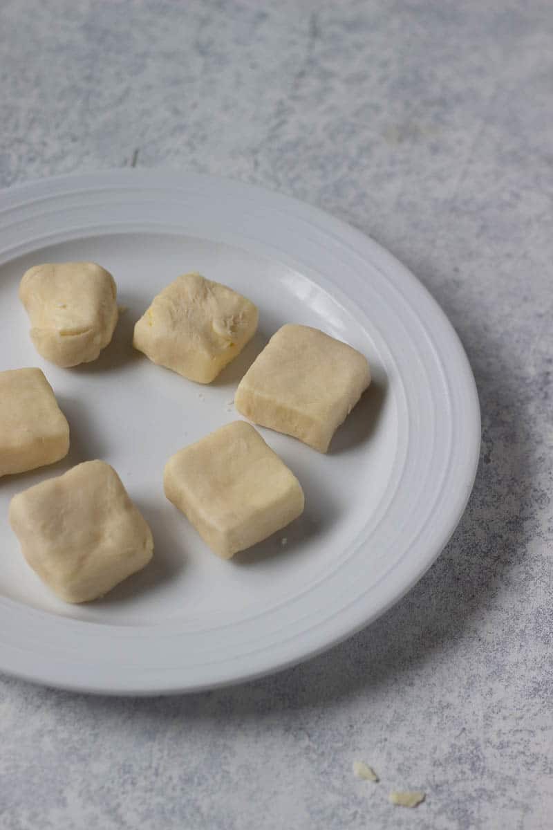 Step Two: Before resting though take out a piece of the dough and wrap it around six pieces of butter, then freeze. I cannot repeat this enough - unless the butter is rock hard it will melt through IMMEDIATELY.