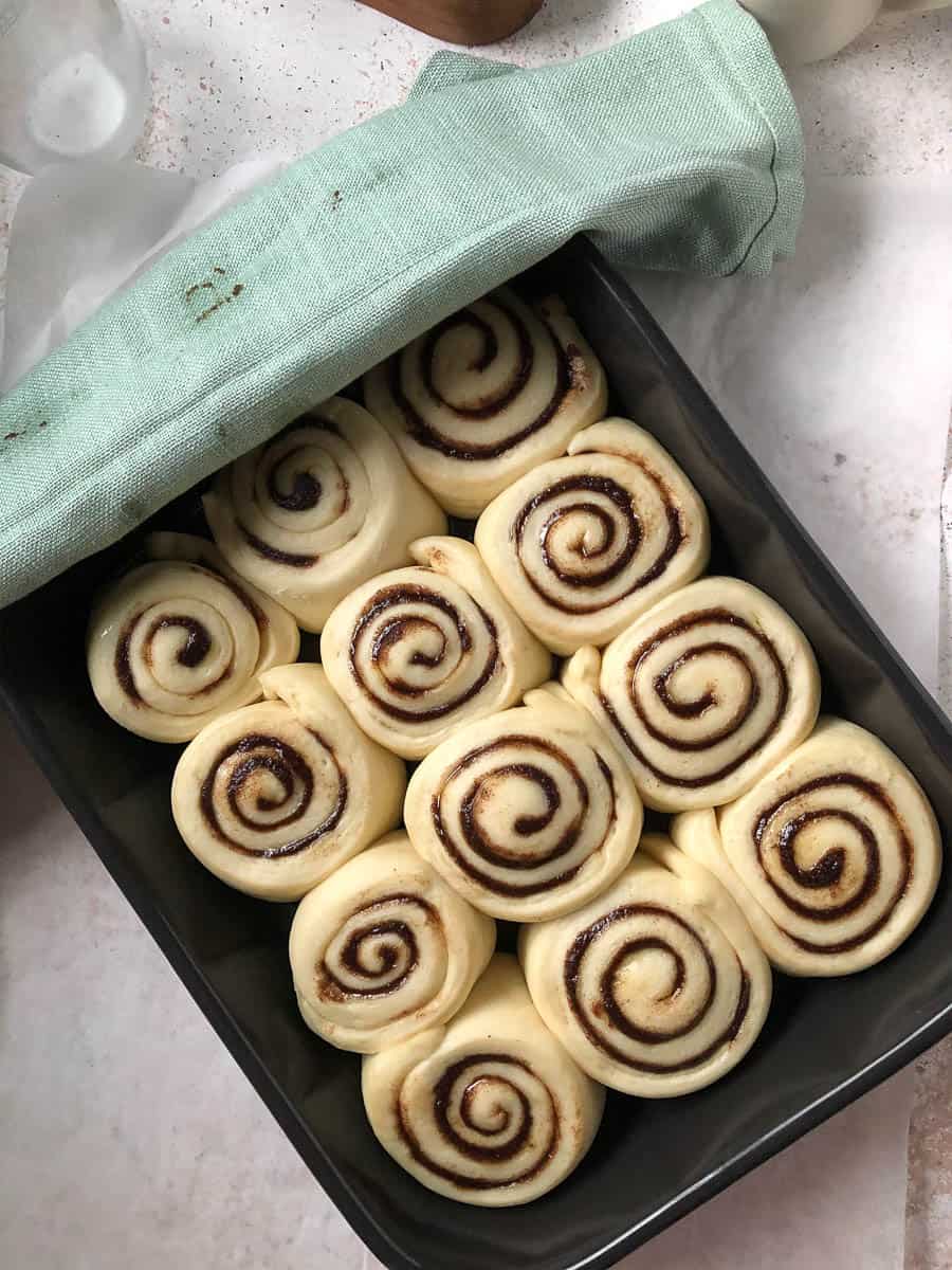 - Place them in a lightly greased 13*9 pan and leave covered in a warm place to double - mine usually takes half an hour