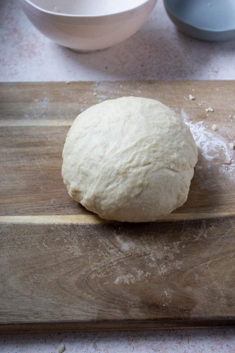 - Tip the dough out onto a lightly floured board and knead it for 5-8 minutes until smooth and form into a ball. You can also do this with a dough hook in a stand mixer.